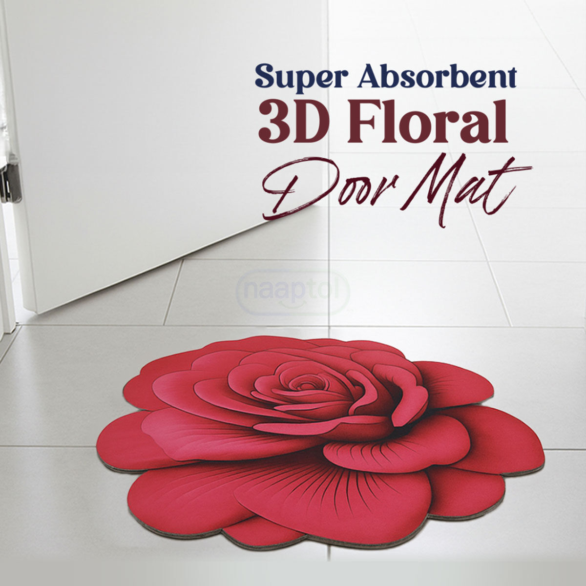 Enhance your home with this elegant 3D floral door mat, designed to absorb water, protect floors, and elevate any space with a touch of style. Soft, durable, and easy to maintain, its a perfect blend of functionality and décor.