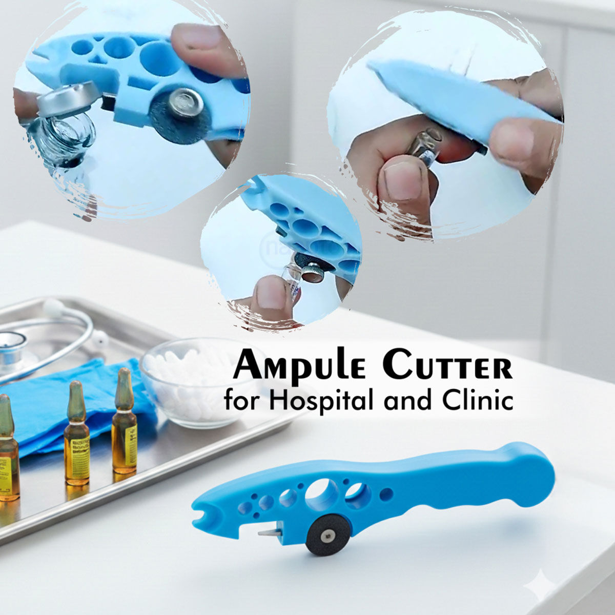 The Ampule Cutter for Hospital and Clinic is a practical medical tool designed for safer and more controlled ampule opening. With its ergonomic design and replaceable grinding wheel, it supports smooth handling across various ampule sizes. Ideal for hospitals, clinics, nursing homes, and diagnostic centers.