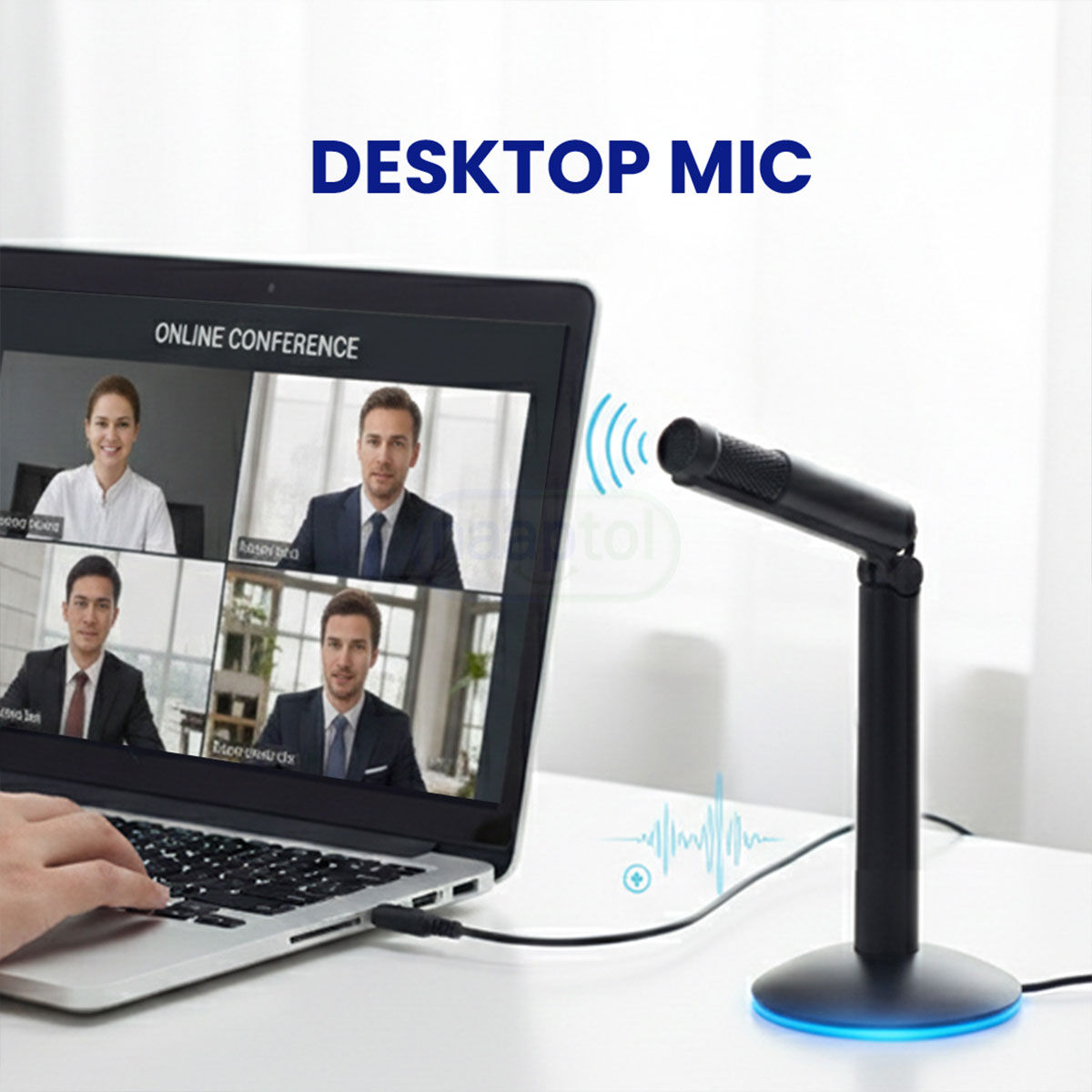 - Desktop mic uses a high sensitivity omnidirectional condenser microphone to pick up sound in 360 degrees.