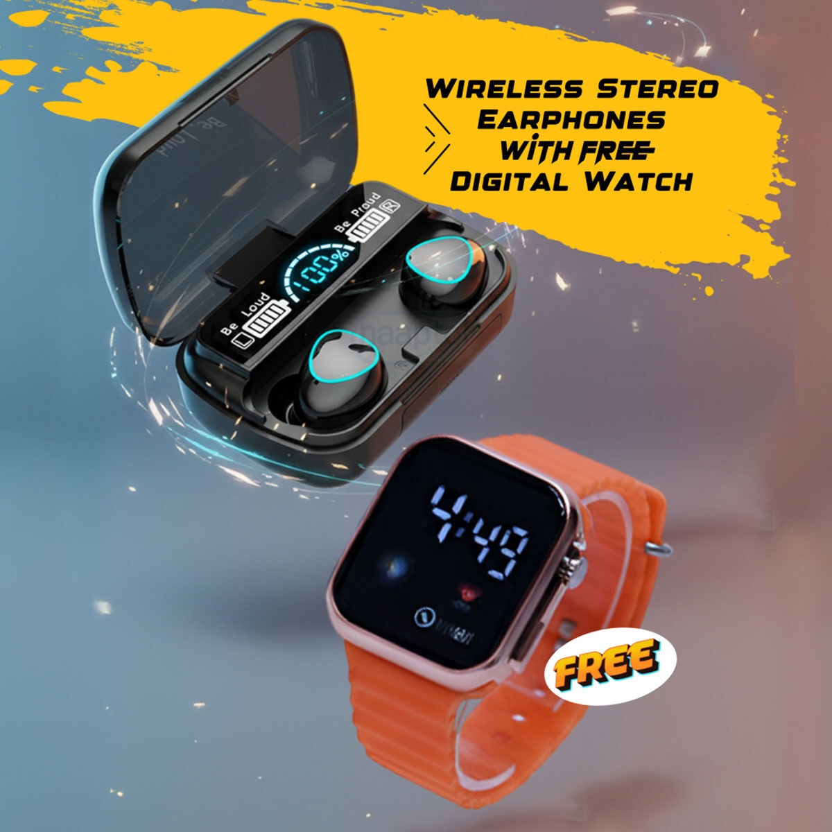 BE WIRELESS. BE WTCHFUL. BE WOW -Wireless Stereo Earphones With Free Digital Watch (TWS86)