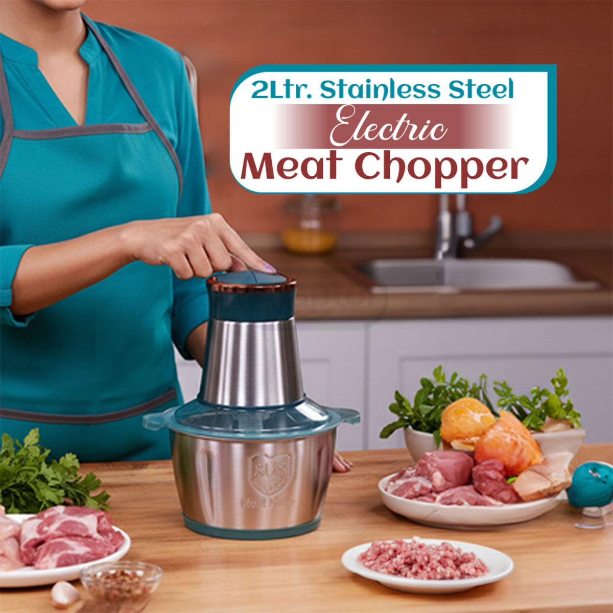 Make cooking easier and faster with the 2L Stainless Steel Electric Meat Chopper, designed for todays modern kitchens. Its powerful motor and dual layer stainless steel blades ensure quick and fine chopping every time. From meat, vegetables, and nuts to sauces and baby food, it handles all effortlessly. The large stainless steel bowl ensures durability and hygiene, while the one touch operation makes it simple to use. Compact, safe, and easy to clean, your all-in-one food prep solution