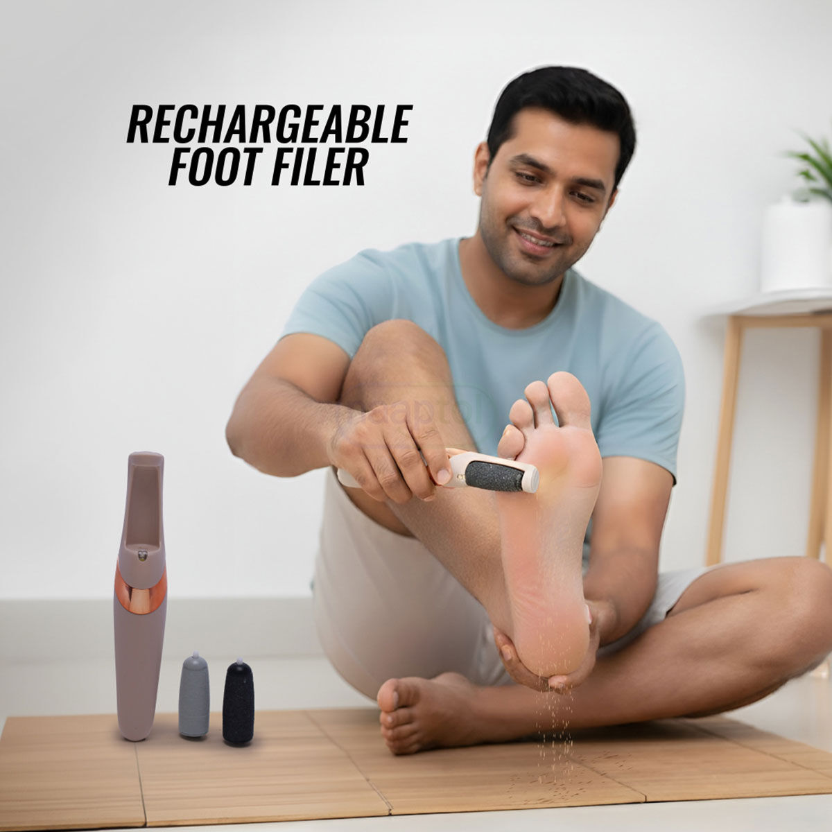 Say goodbye to rough heels and calluses with the Rechargeable Foot Filer that can be your personal pedicure partner for smooth, healthy feet. Its dual roller heads gently buff away dead skin to reveal visibly softer results in minutes. The cordless and rechargeable design makes it easy to use anytime, anywhere. Enjoy a safe, painless, and salon like experience from the comfort of your home. Compact, portable, and perfect for both men and women who love clean, beautiful feet.