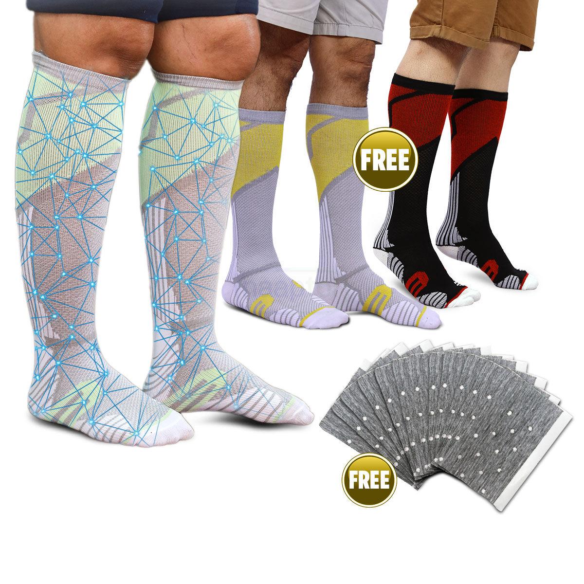 DESIGNED FOR LEG WELLNESS -Varicose Compression Socks buy 1 get 2 with 10 Various Patches Free - (VCS3)